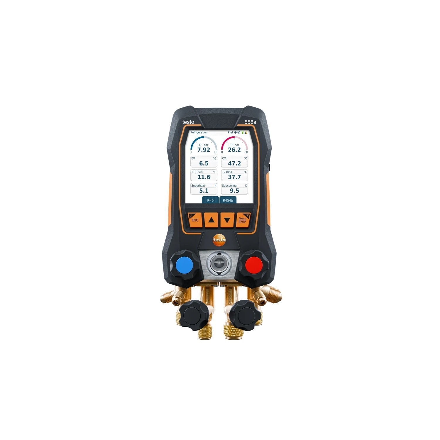 The Testo 558s offers an intuitive app feel in the manifold, with a touchscreen and clear measurement graphs on a large colour display. In addition to the touchscreen, the manifold can be operated via keys when working with gloves. The manifold is ideal for every situation thanks to its A3 and A2L compatibility, high robustness with IP54, and a hybrid charging system comprising rechargeable and non-rechargeable batteries.