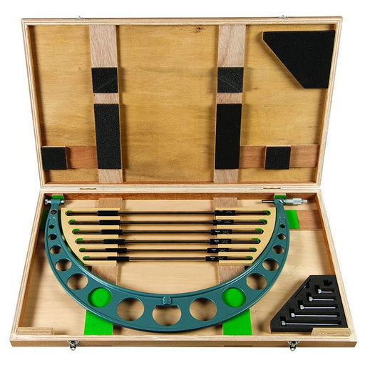 View full detailsFeatures● 16-20" Measuring range / Graduations: 0.001" ● With 4 interchangeable Anvils.● With a Ratchet Stop for constant force.● Supplied with zer...