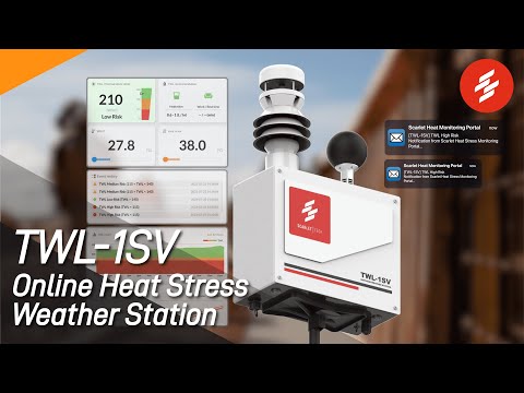 The Scarlet TWL-1SV is a powerful, cloud-ready heat stress weather station designed to enhance safety and protect workers in high-temperature environments. It features built-in LED signage that displays key heat stress indices, including TWL, WBGT, and Heat Index, along with real-time warning statuses, keeping on-site workers and supervisors continuously informed of changing conditions.