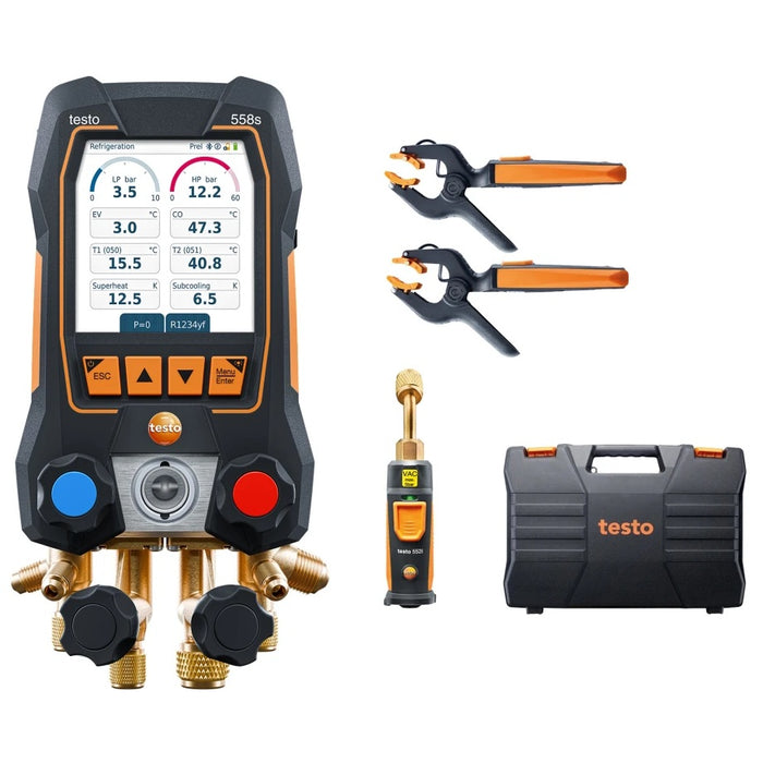 Start your wireless measurements on refrigeration and air conditioning systems and heat pumps straight away. The practical kit containing the Testo 558s digital manifold with Bluetooth connection to the wireless temperature and vacuum probes offers the ideal tools for everyday tasks. The Testo 558s offers intuitive operation thanks to its touchscreen and clear measurement graphs on a large colour display. In addition to the touchscreen, the manifold can also be operated via keys when working with gloves. Thanks to its A3 and A2L compatibility, high robustness with IP54, and a hybrid charging system comprising rechargeable and non-rechargeable batteries, the manifold is ideal for every situation.